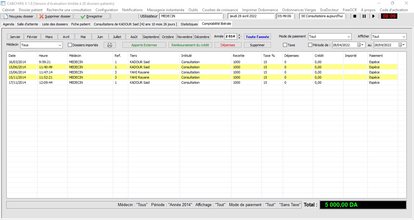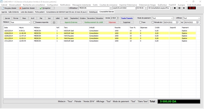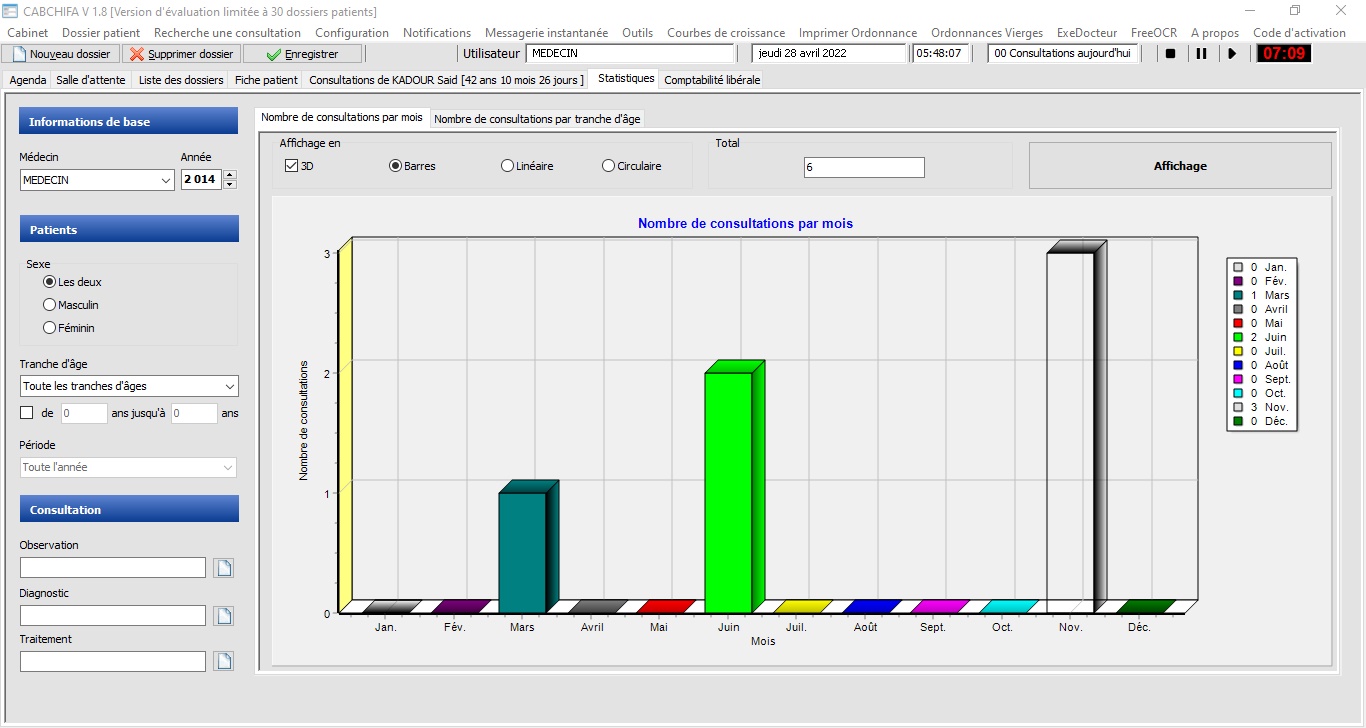 Statistiques de l'activité du cabinet