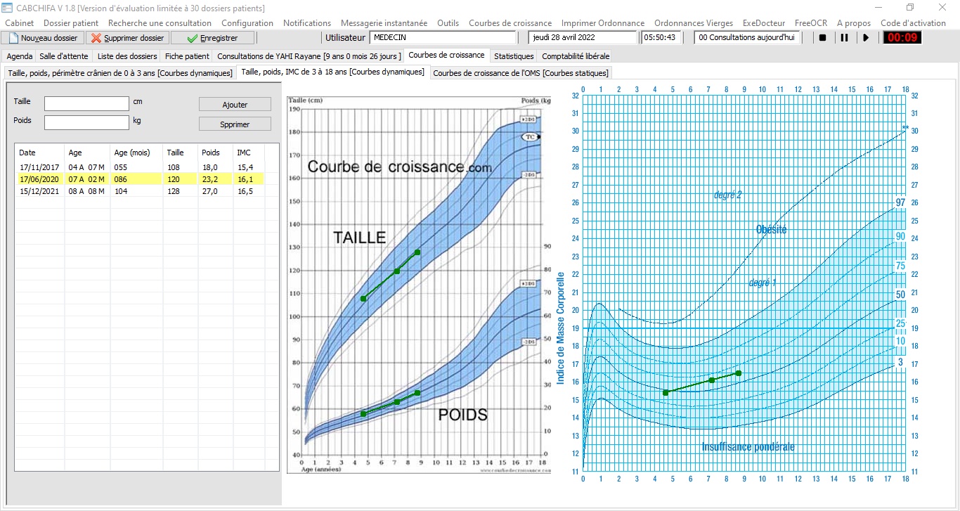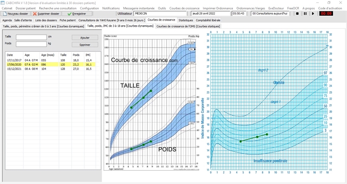 Courbes de croissance pédiatriques dynamiques