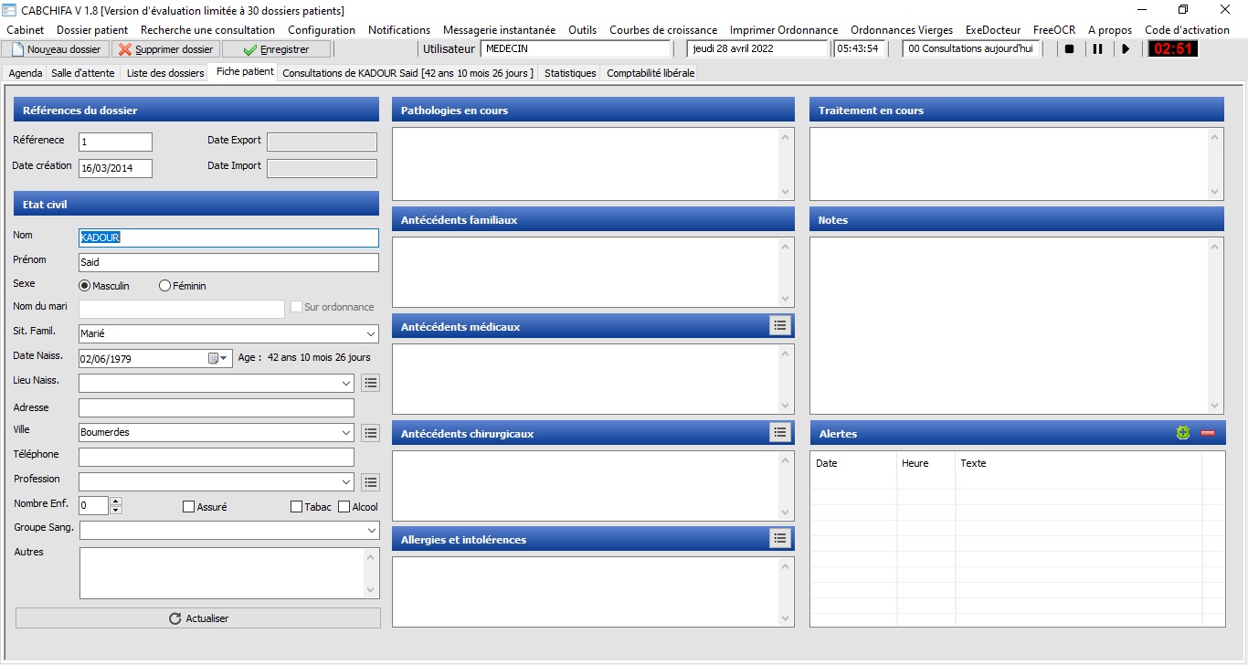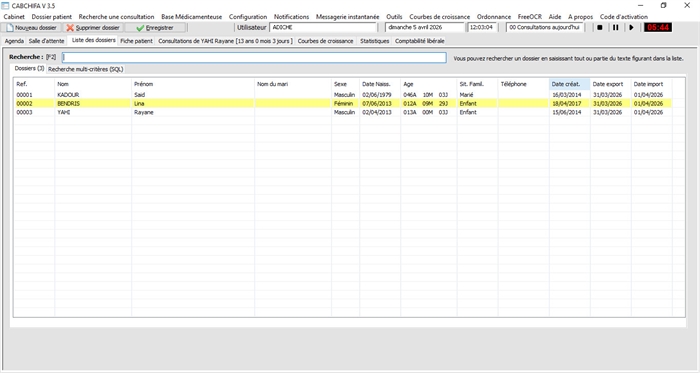 Liste des dossiers et recherche patient